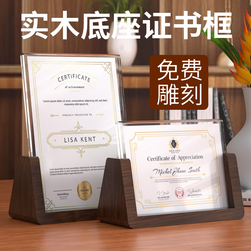 亚克力水晶荣誉证书证件书相框营业执照框架a4奖状框志愿者捐赠收藏