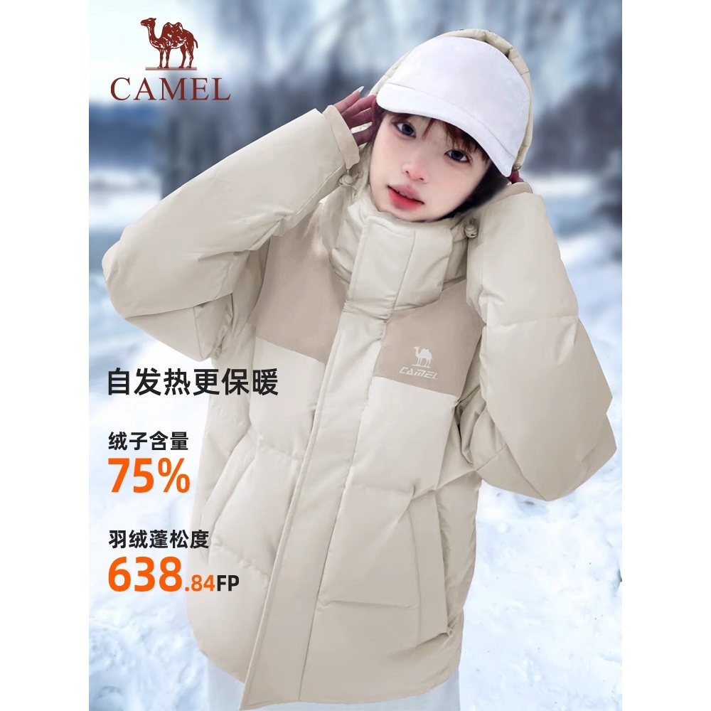 骆驼泡芙运动羽绒服男女中长款2025年秋冬季三防聚热连帽御寒外套