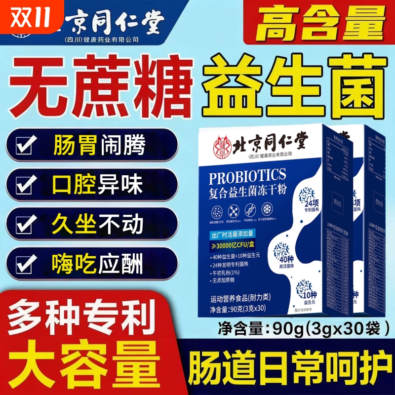 北京同仁堂益生菌冻干粉大人儿童成人肠胃肠道益生元正品调理活性