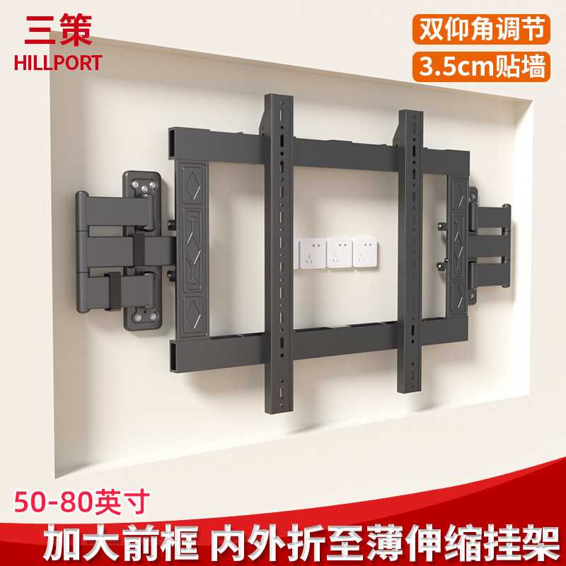 三策双墙板65-80英寸六臂至薄左右旋转上下毫米微调嵌入电视墙挂
