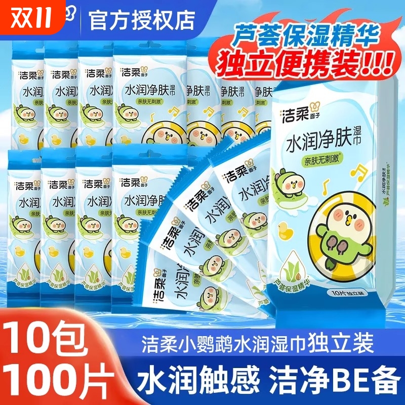 洁柔湿巾100片水润净肤便携式湿纸巾小鹦鹉联名芦荟保湿清洁湿巾