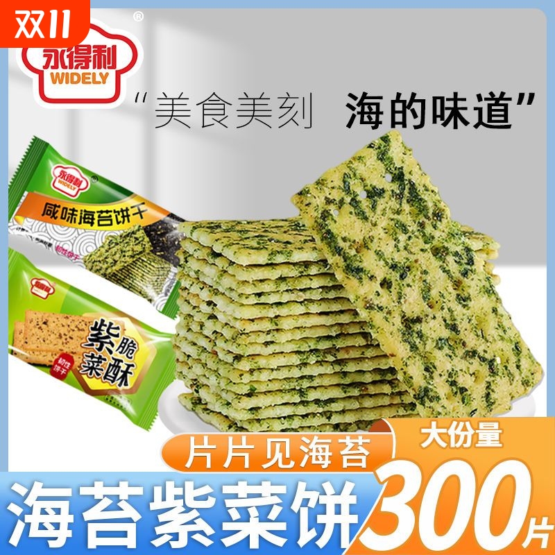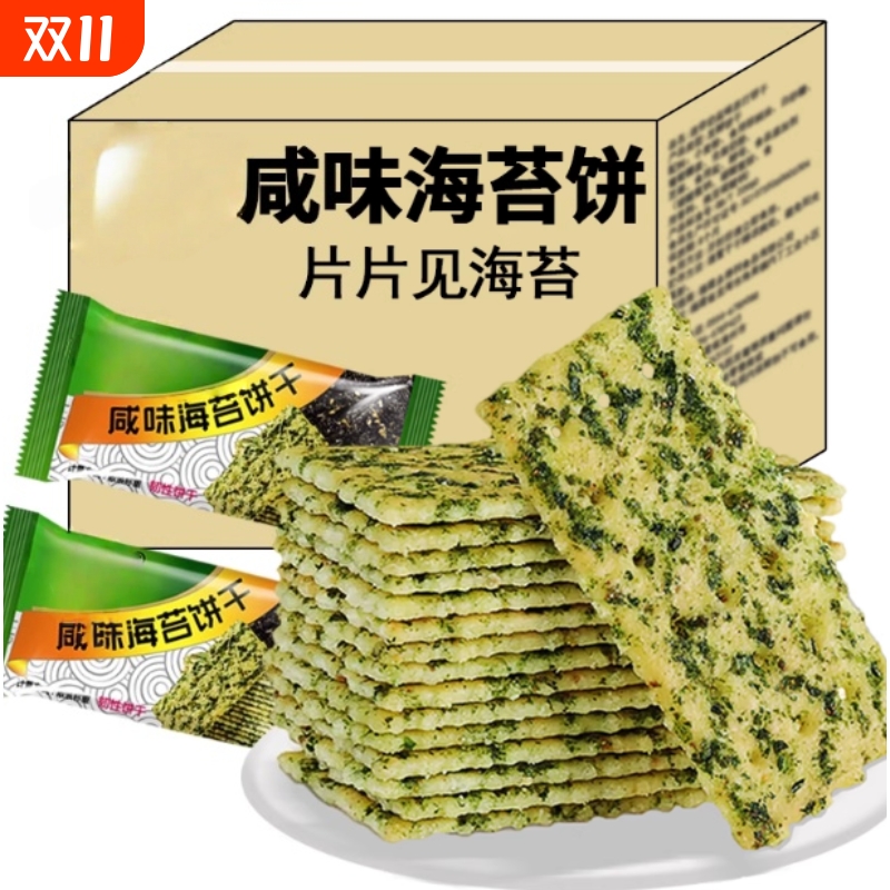 山坶超市海苔饼干紫菜薄脆苏打咸味早餐网红休闲整箱代餐饱腹零食