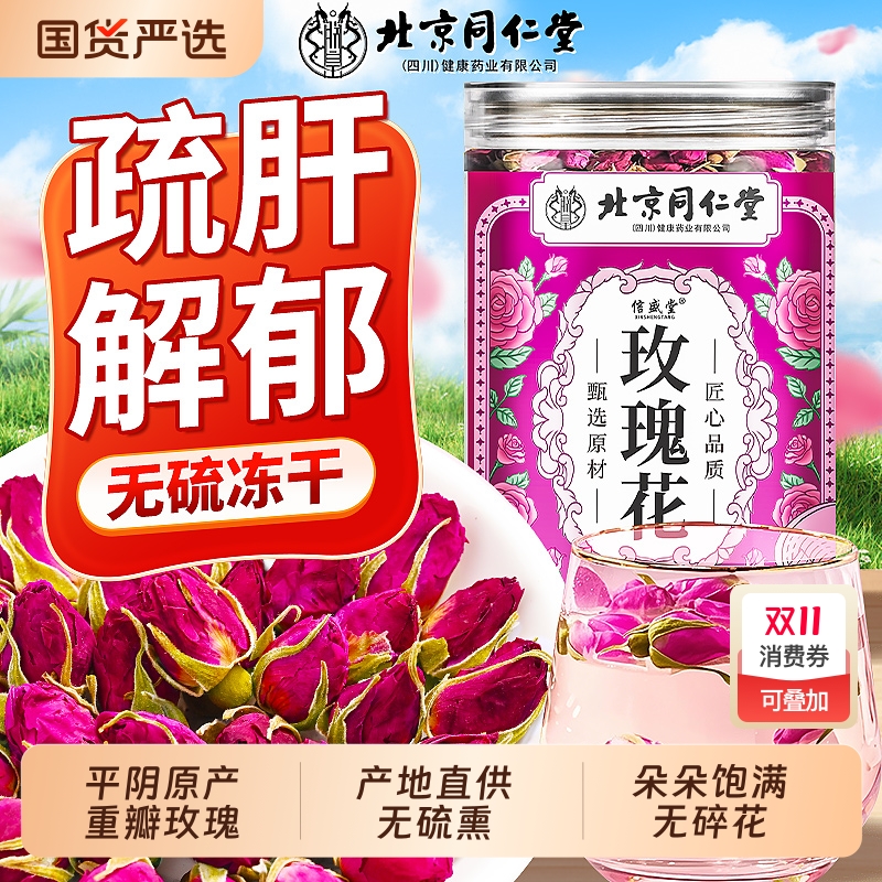玫瑰花冠茶干玫瑰花蕾玫瑰散装花草茶叶泡茶花茶组合瓶装FG