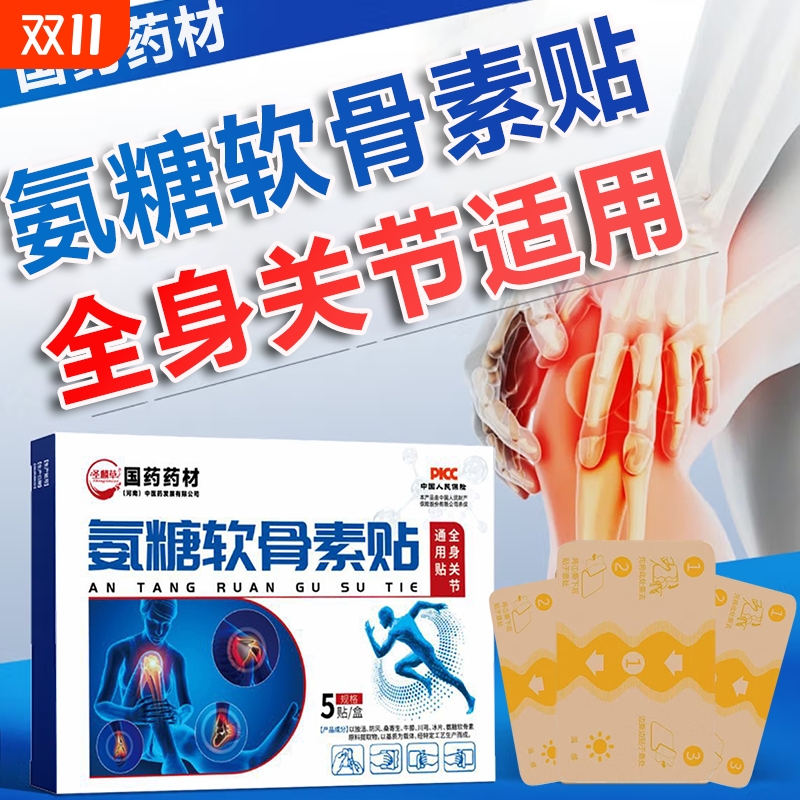 国药氨糖软骨素贴官方旗舰店正品肩颈椎腰膝盖贴热敷全身通用关节