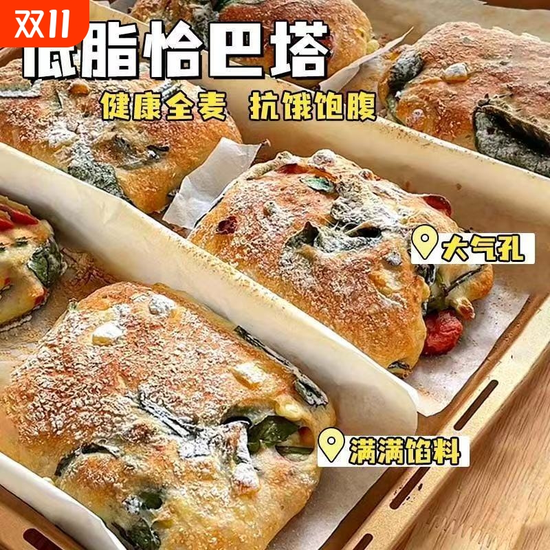 无加蔗糖菠菜培根恰巴塔全麦面包胚早餐速食健身减代餐肥抗饿零食