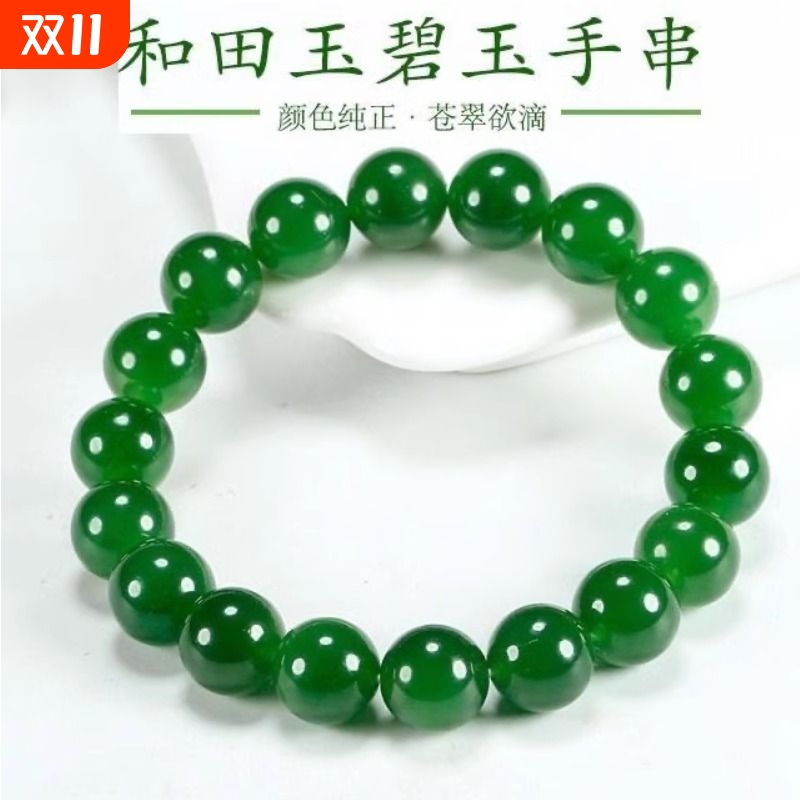 和田玉碧玉手串手链冰种高品质菠菜绿男女款旺夫仿玉石正阳绿手链