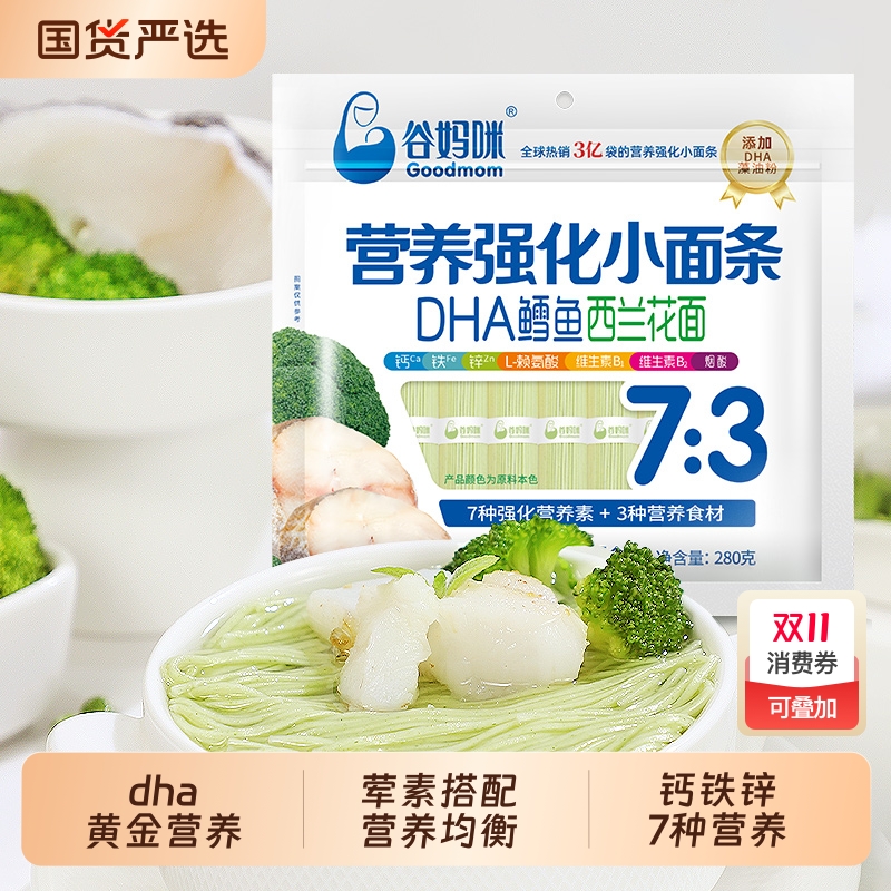 谷妈咪营养强化儿童面条DHA益生元原味面蔬菜面细面鸡蛋菠菜面