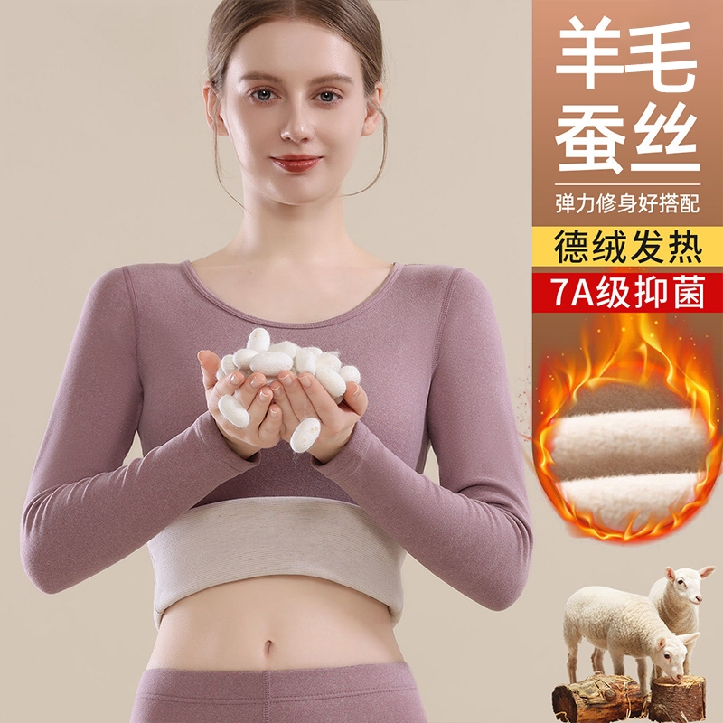 三叶蕉羊毛蚕丝保暖套装女士冬季7A抑菌蓄热养肤打底内衣秋衣秋裤