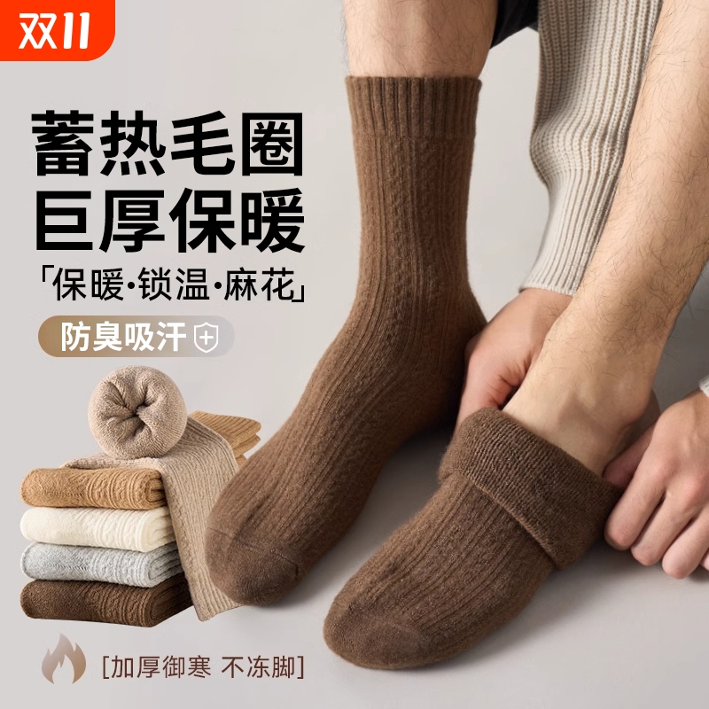 加绒加厚保暖毛圈防寒蓄热中筒袜
