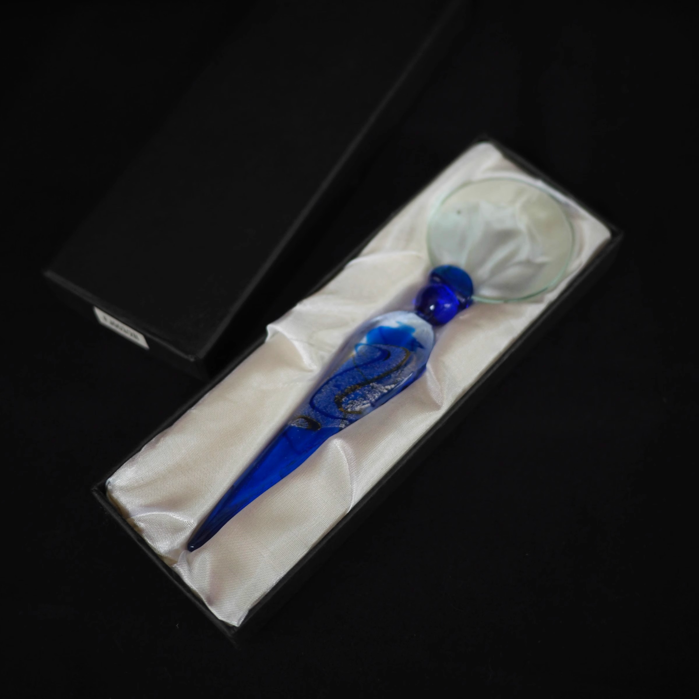 双子商店 孤品中古日本制手作金银彩蓝色琉璃把手放大镜摆件