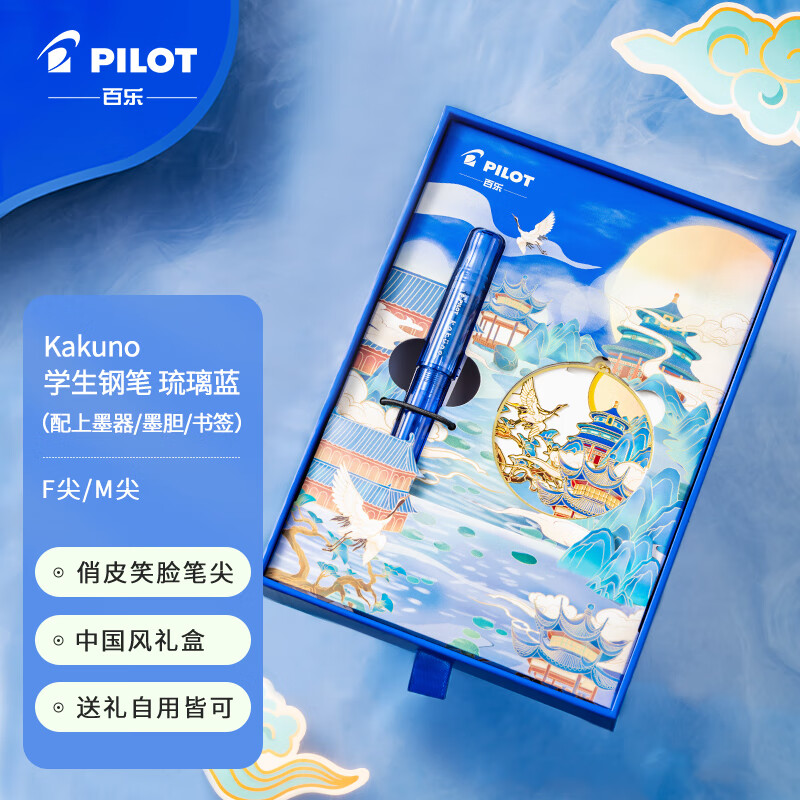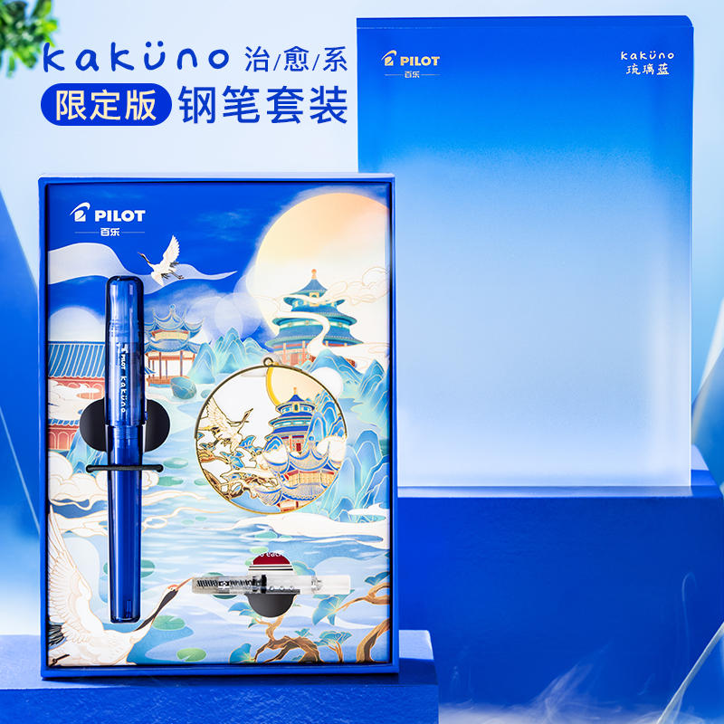 PILOT/百乐KaKuno笑脸钢笔琉璃蓝限定款国风礼盒套装正姿