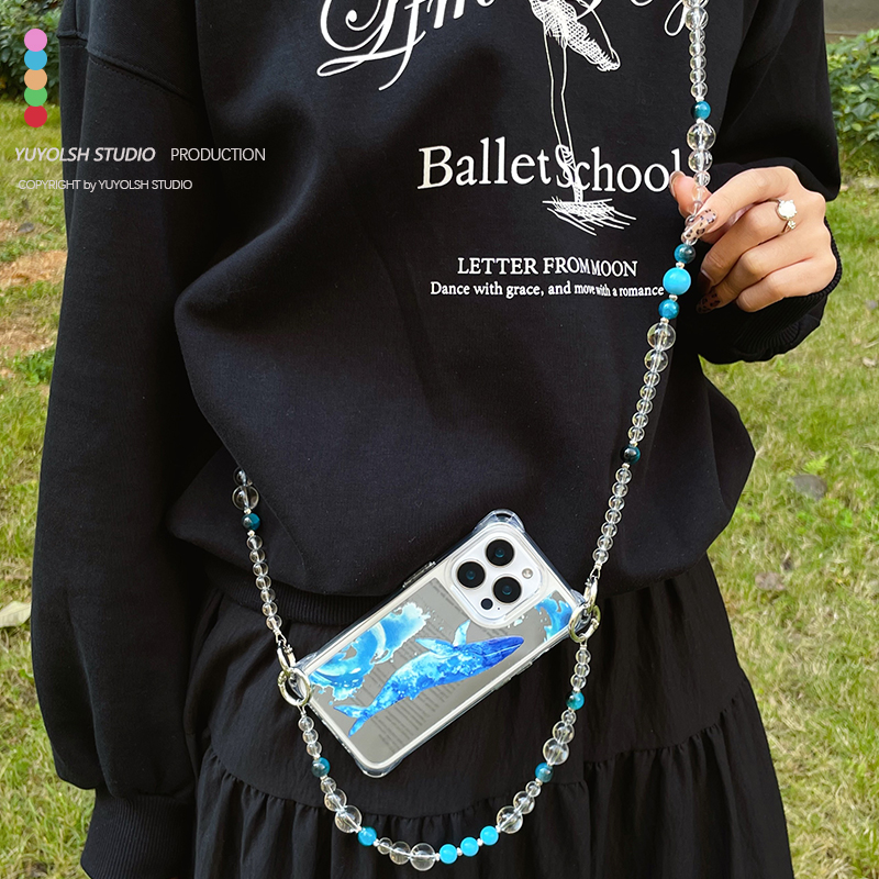 深海蓝鲸镜面手机壳斜挎可背挂链