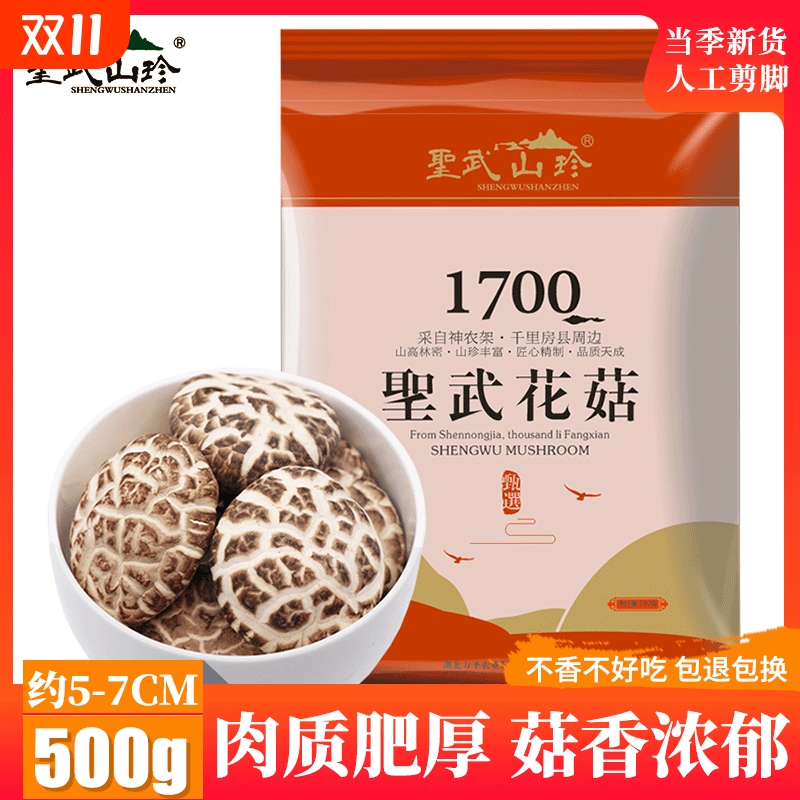 圣武山珍湖北房县大花菇香菇冬菇干货500g煲汤菌菇蘑菇神农架特产