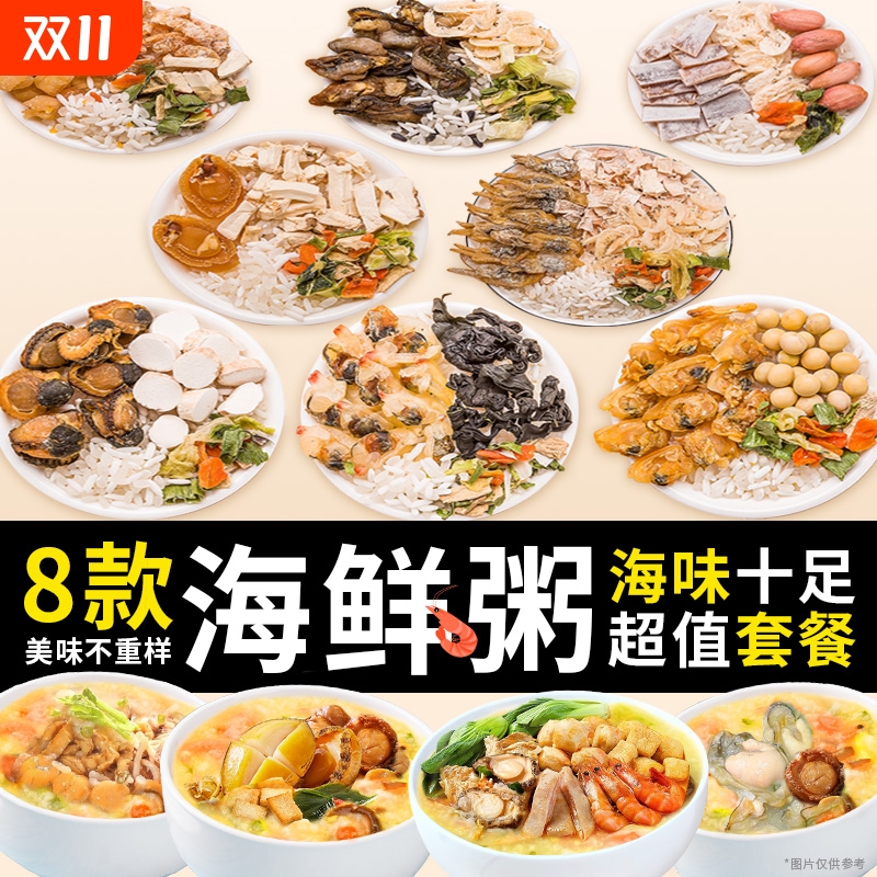 海鲜粥原材料每日不重样干贝虾仁粥五谷杂粮潮汕砂锅蔬菜粥小包装