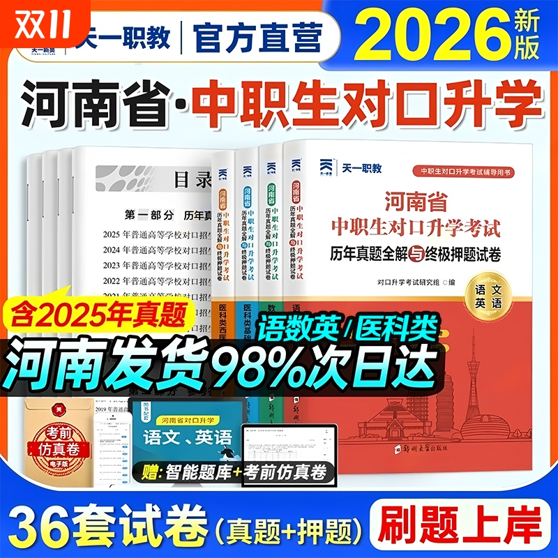 2026河南省中职对口升学考试语数英历年真题全解与终极押题试卷医