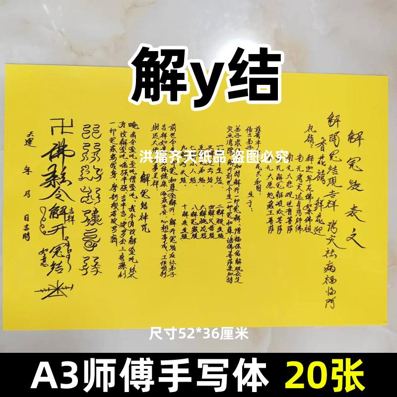20张解y冤结文 A3师傅手写字体17号大牒文各种书疏大全黄裱纸
