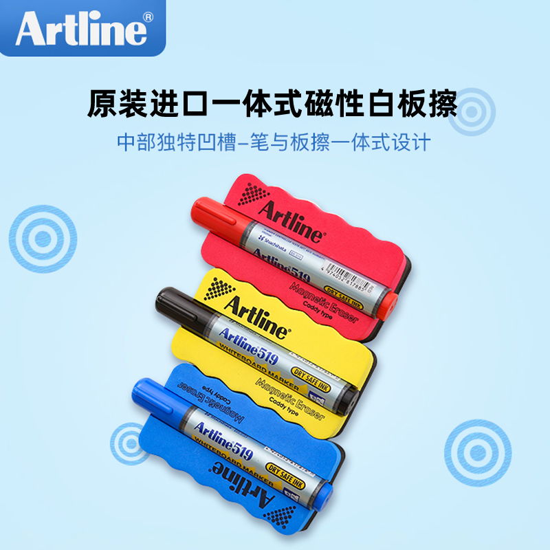 日本旗牌Artline原装进口凹槽式创意吸附型磁性白板擦抹茶碗包