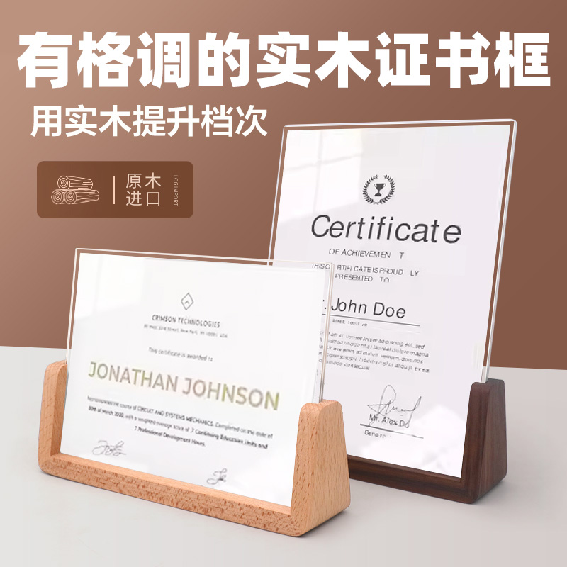 A4L型授权牌相框荣誉证书框立牌桌摆亚克力证书框授权代理证书摆台