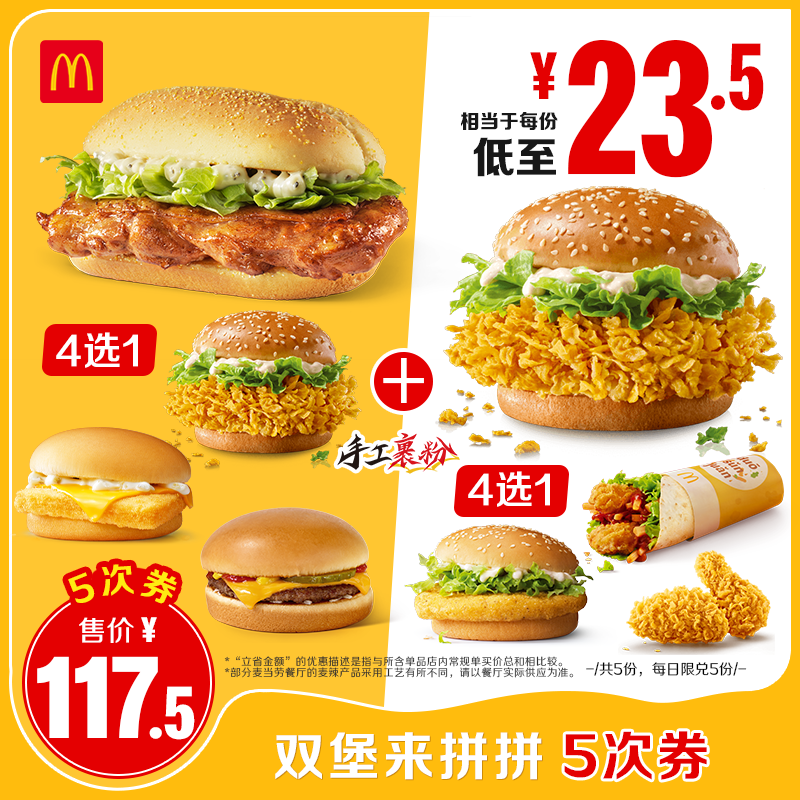 【下拉详情有惊喜】麦当劳 双堡来拼拼 5次券 【谨防诈骗】
