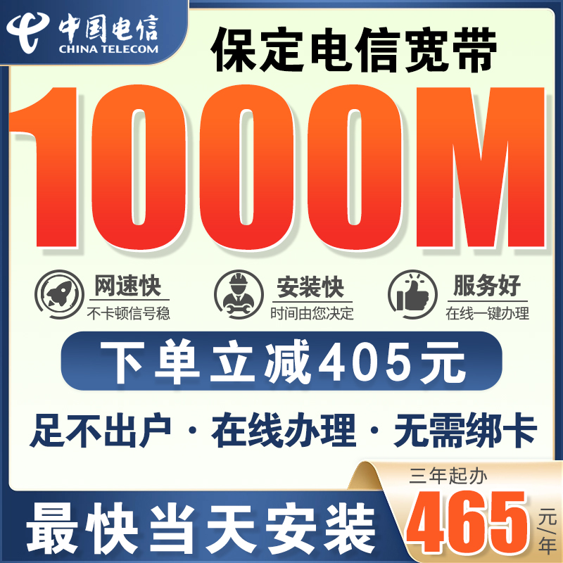 保定电信家庭宽带1000M光纤宽带单宽上门办理免安装费不绑卡