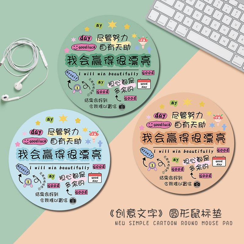 我会赢得很漂亮鼠标垫电脑办公垫打工职场文字笔记本键盘圆桌面垫