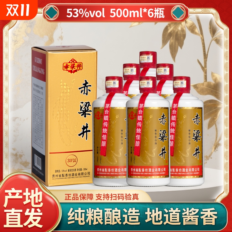 赤粱井贵州酱香型白酒53度纯粮食酒正品官方旗舰店整箱500ml*