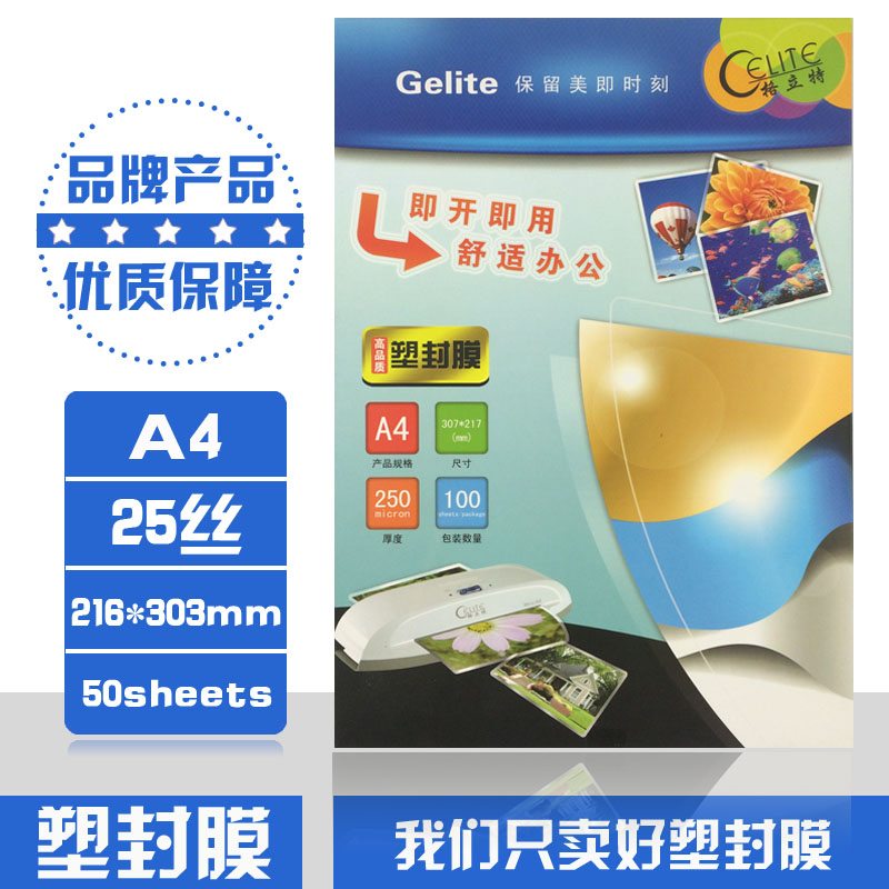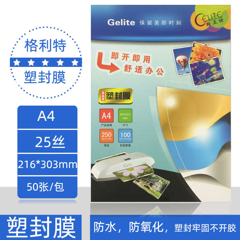 格立特 塑封膜A4 25C丝 过塑膜 护卡膜 塑封纸 过胶膜 5