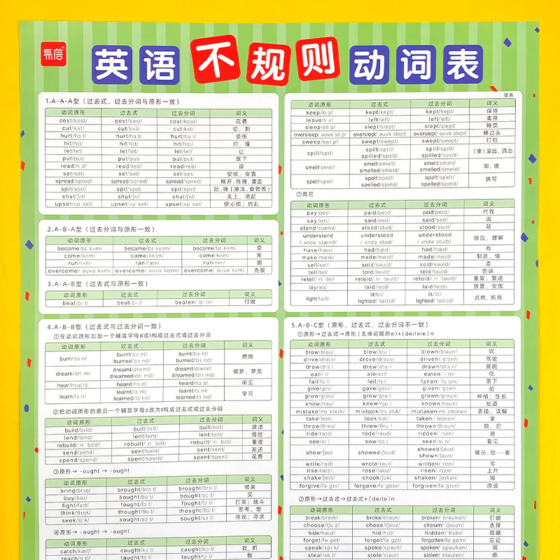 【易蓓】初中英语不规则动词表挂图过去式变化表时态变化变形汇总专项