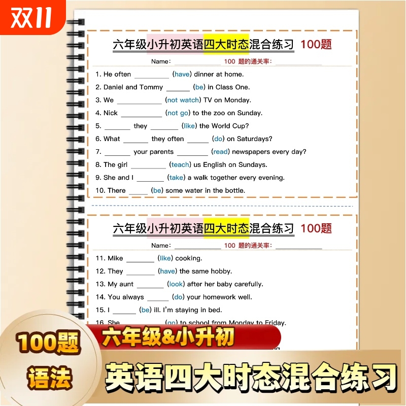 六年级小升初英语四大时态混合练习含答案英语语法专项练习般现在时过