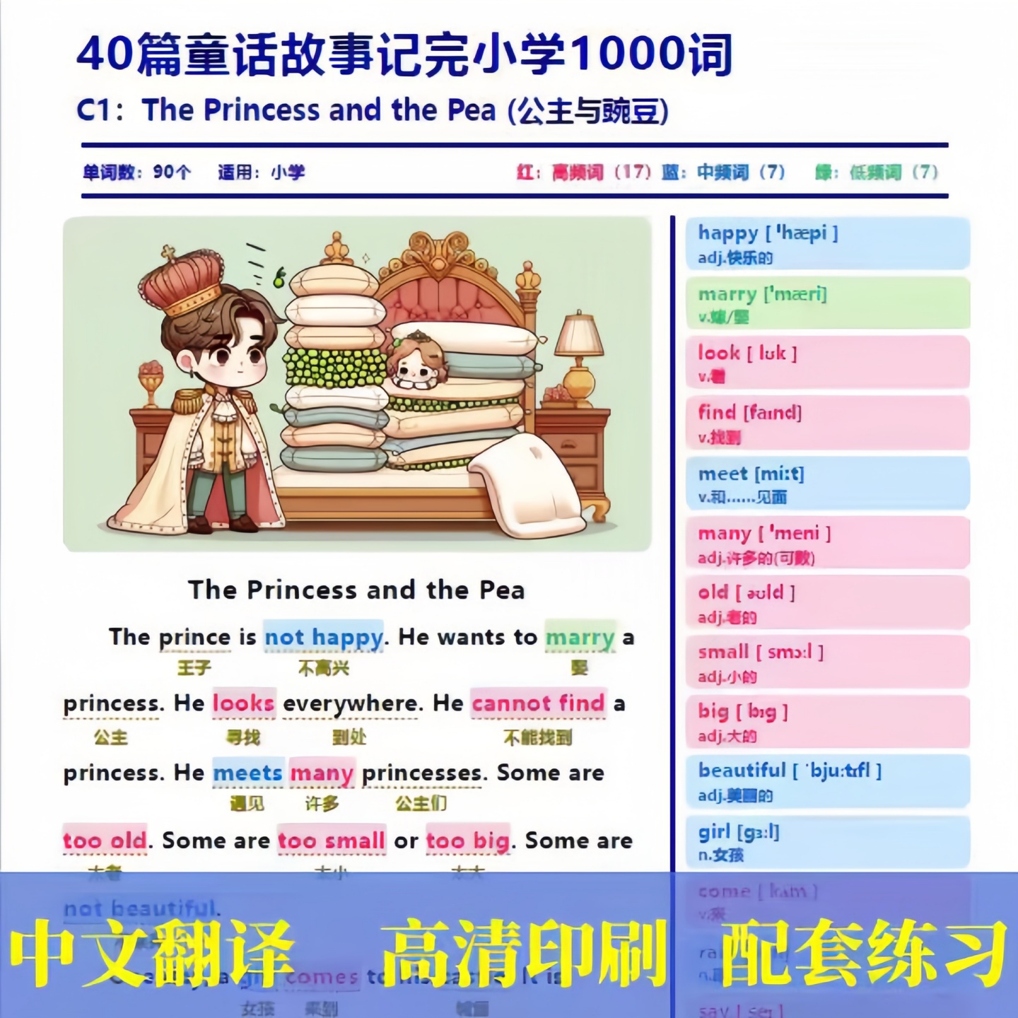 40篇童话故事记小学1000核心词汇英语语法运用中英文互译带音频