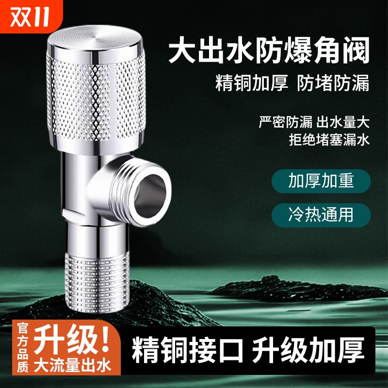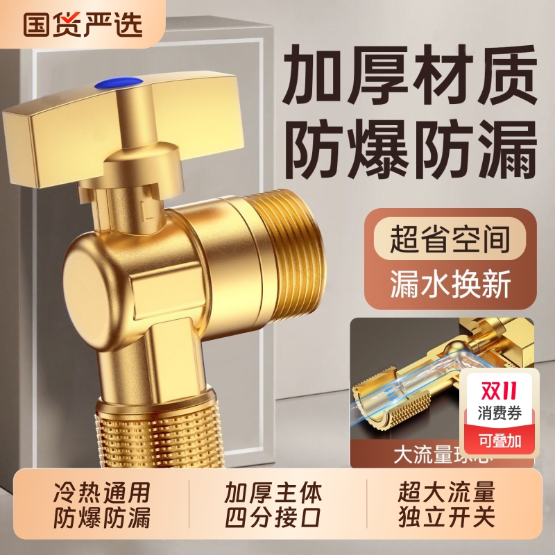全铜角阀家用三角阀冷热通用阀门带开关4分水阀一进二出黄铜角阀