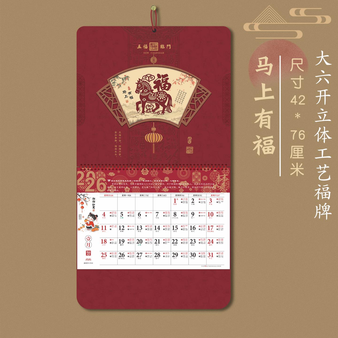 创意加厚2026年日历新款福字挂历公司广告定制宣传马年月历家用挂