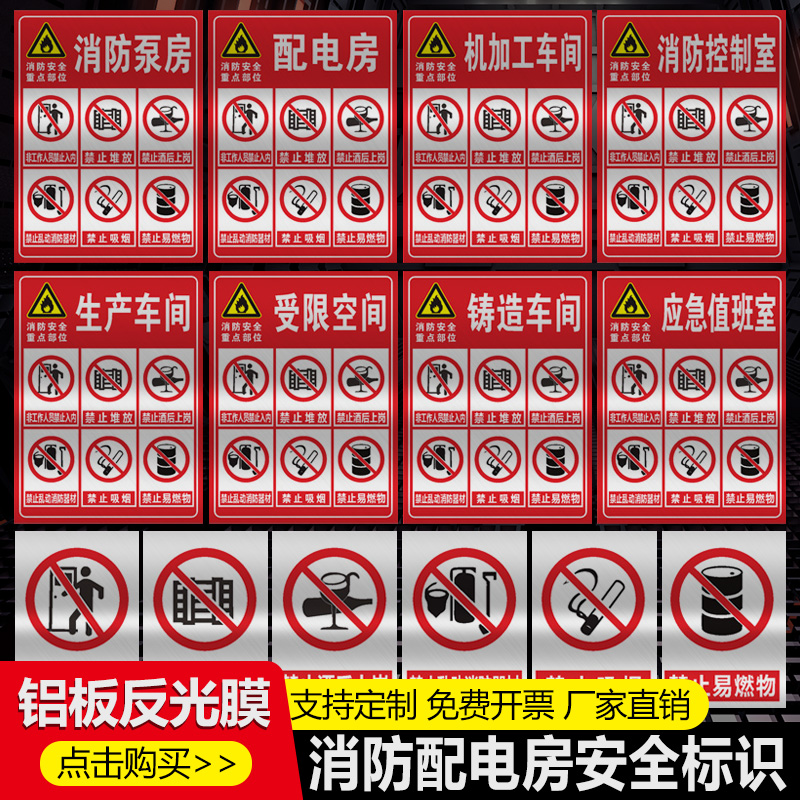 消防控制室安全重点部位水泵房警示温馨提示牌泵房警示警告严禁烟火禁