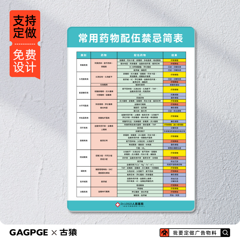 常用药物配伍禁忌表标识牌输液表459种中西药药物皮试液配置标贴