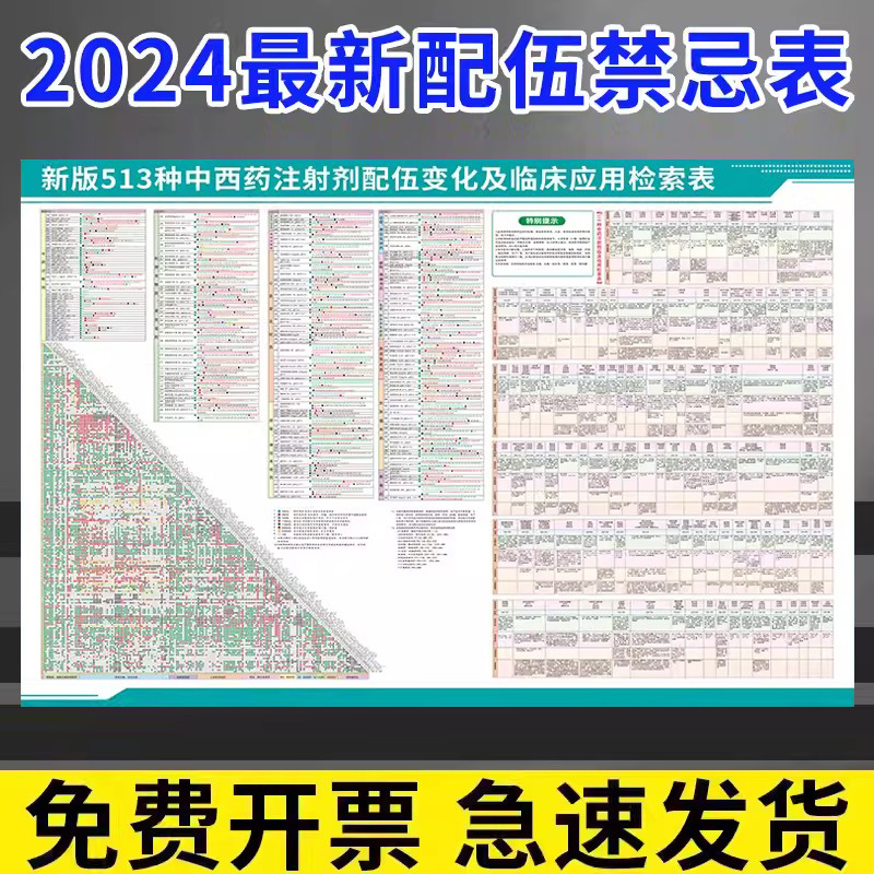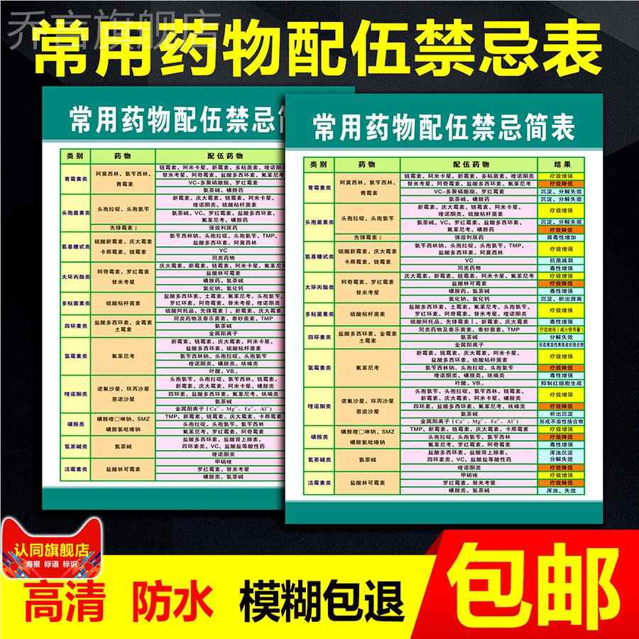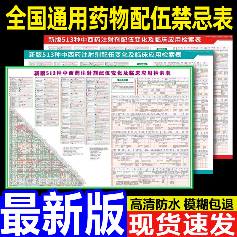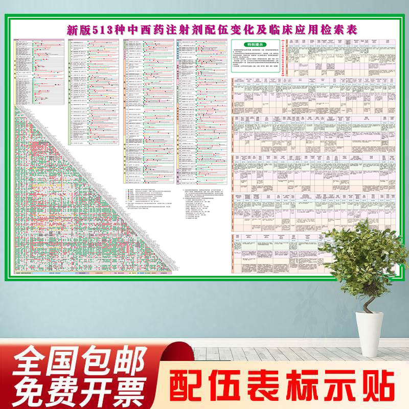 2019常用药物配伍禁忌表挂图注射剂药品输液检索表墙贴皮试液配置