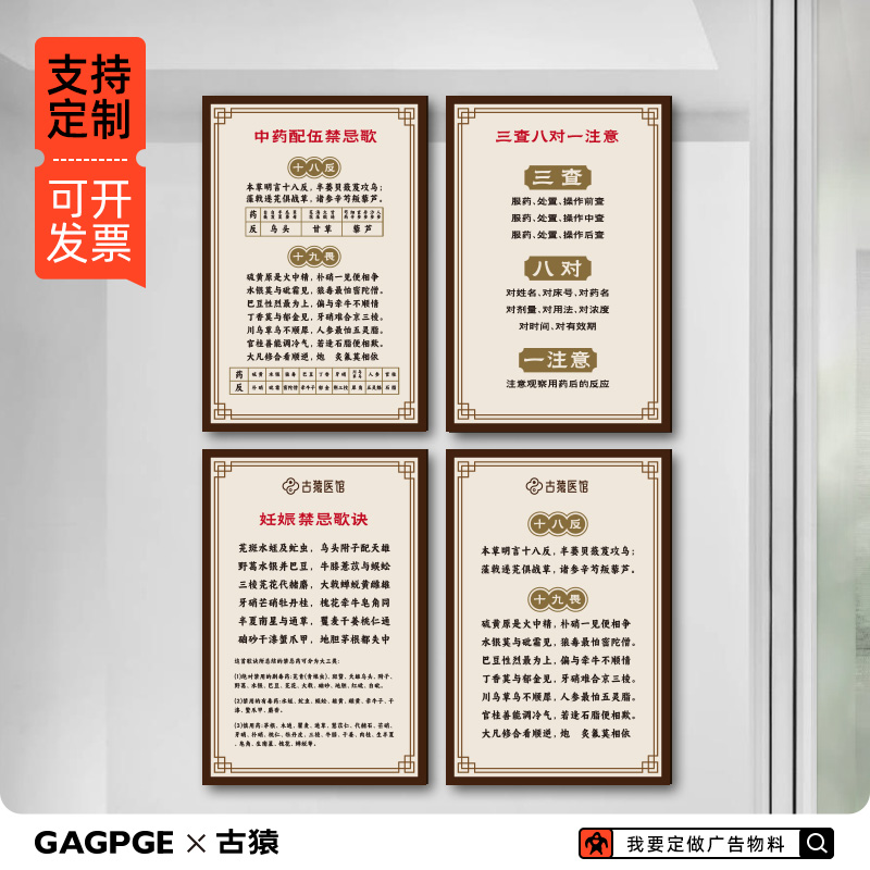 中医诊所十八反十九畏标识牌三查八对中药配伍禁忌表妊娠制度贴牌