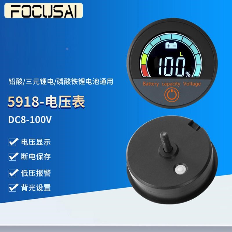 新款圆形数字数显汽车电动车铅z酸蓄电瓶锂电池电压电量表整体防