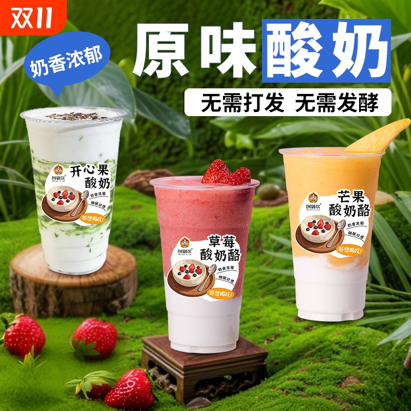 创御饮原味酸奶1L奶茶店水果捞专用浓稠拉丝原味酸奶商用厂家直发