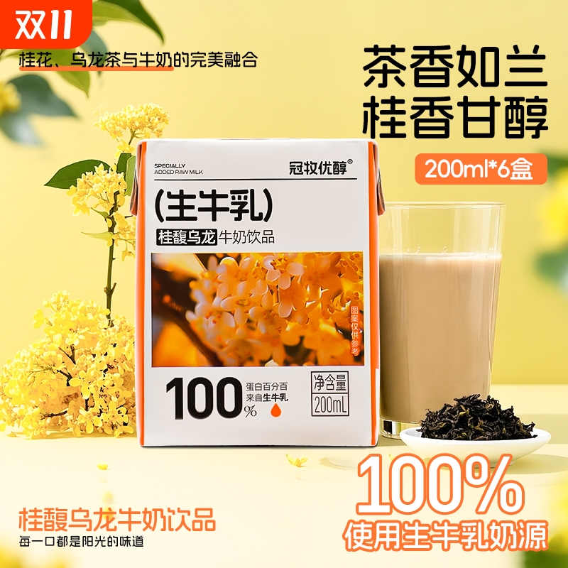 冠牧优醇乌龙风味牛奶200ml*6盒茶生牛乳早餐奶桂花香饮品茉莉
