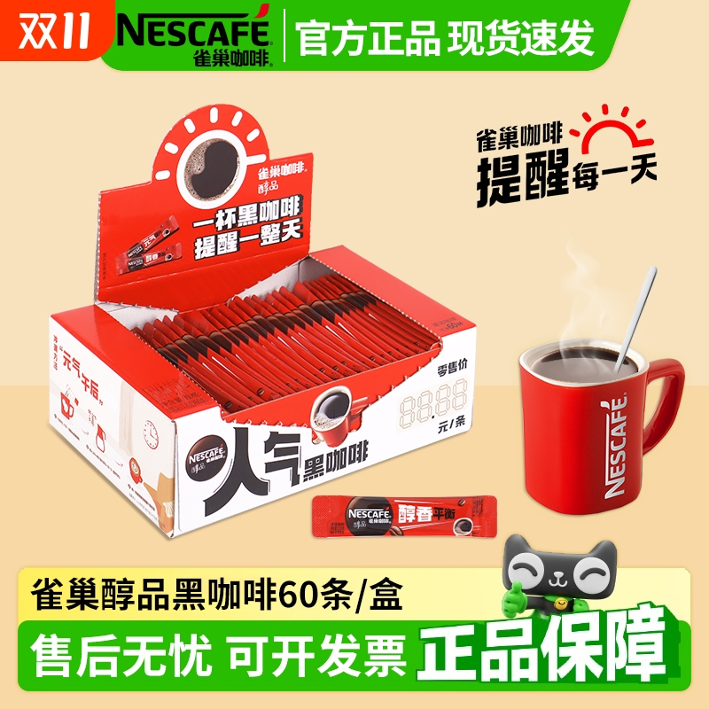 雀巢醇品黑咖啡无蔗糖添加美式速溶咖啡黑咖提神60包盒装醇香