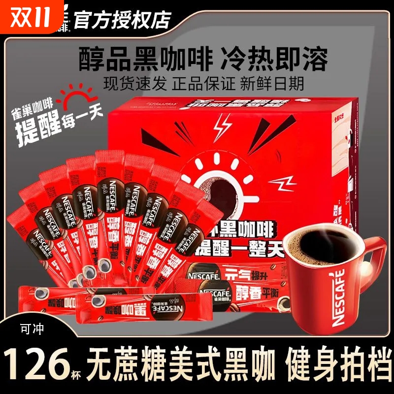 雀巢咖啡醇品美式纯黑咖啡速溶咖啡健身提神深黑咖啡粉官方正品