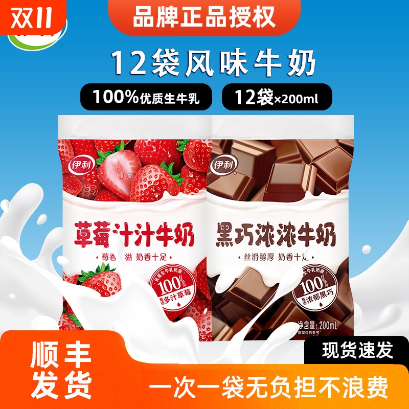 伊利草莓汁汁黑巧浓浓牛奶200mI丝滑醇厚生牛乳甜甜香甜