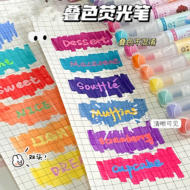 叠色双头荧光笔大容量小学生初高中生用彩色标记笔划重点记号笔高颜值