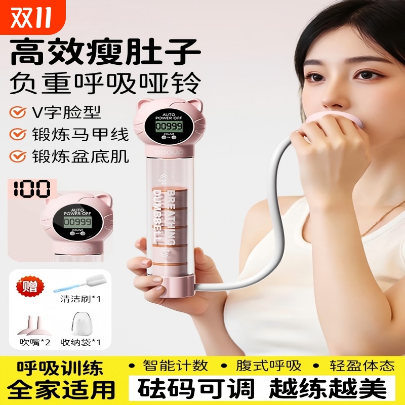 哑铃负重腹式呼吸训练器家用锻炼肺活量腹肌马甲线盆底肌健身器材