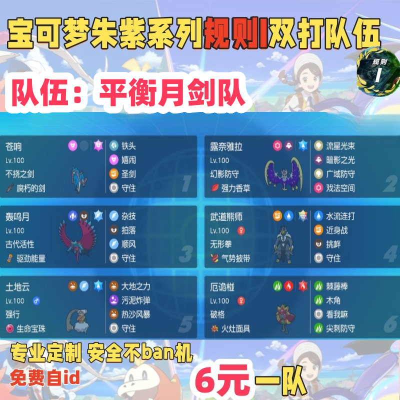 switch宝可梦朱紫规则I双打队伍平衡月剑队免费自id6元1队