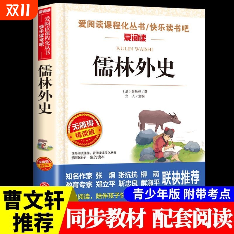 儒林外史正版 原著九年级下册必读无障碍阅读导读版 青少年版白话文
