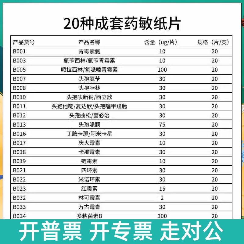 药敏纸片抗生素空白试纸实验氨苄西林青霉素头孢他啶庆大霉素