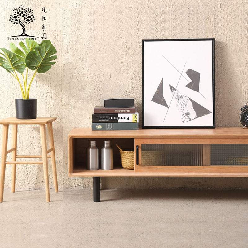 日式电视柜 原木小清新储物柜客厅卧室靠墙实木带抽屉收纳柜 凡树