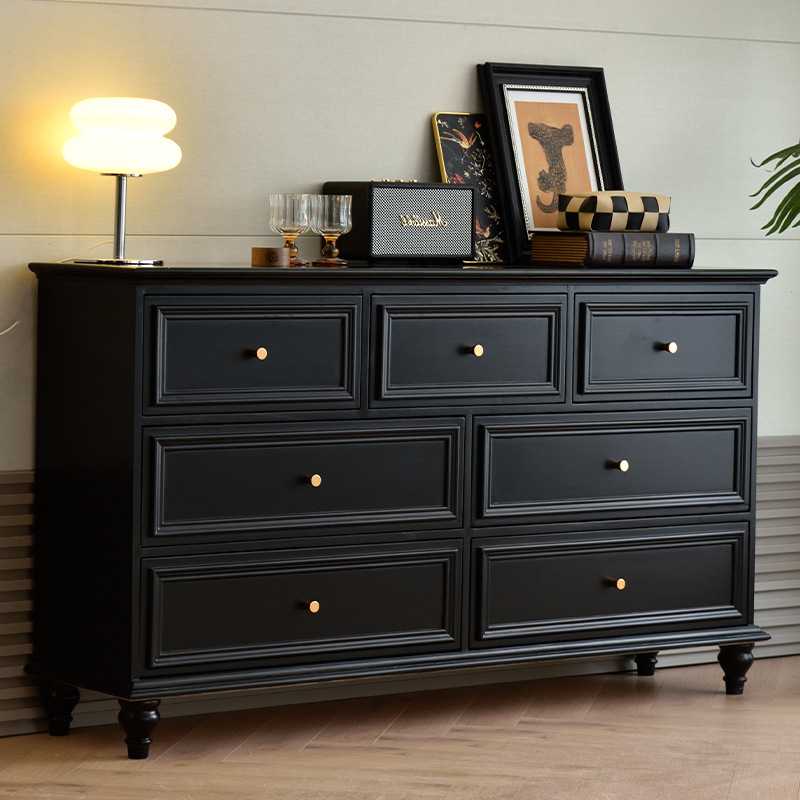 美式实木五斗柜卧室黑色简约抽屉柜子靠墙轻奢立柜床尾收纳柜