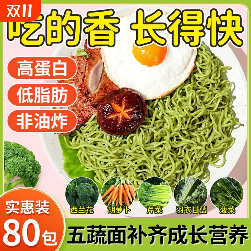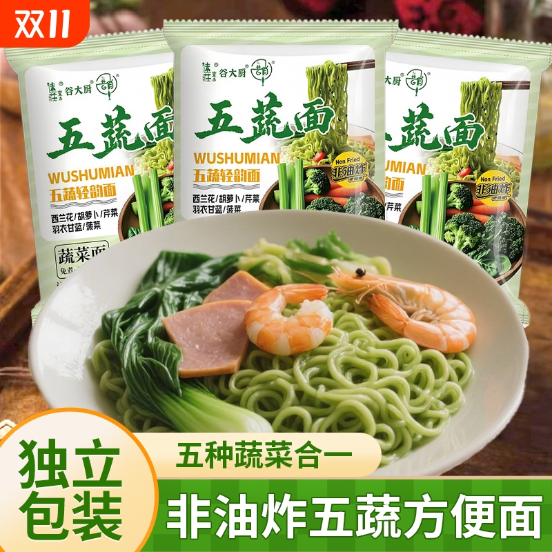 昔俏五蔬面蔬菜面非油炸早餐面食代餐整箱袋装方便面挂面火锅面